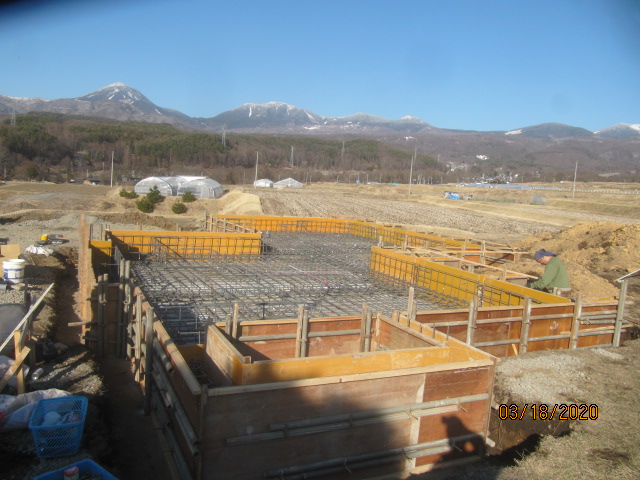 寒冷地では根切り深さ1mが標準 基礎工事期間は3月~11月末までが好ましいです。(地盤が凍結して基礎が狂いやすいため)